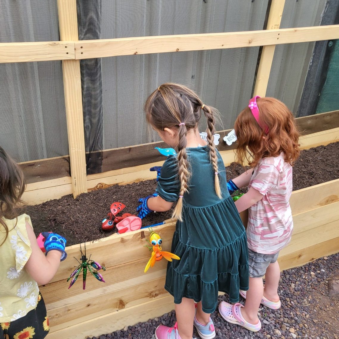 Our outdoor play area promotes exploration on our car track, in our garden, and on our play equipment.